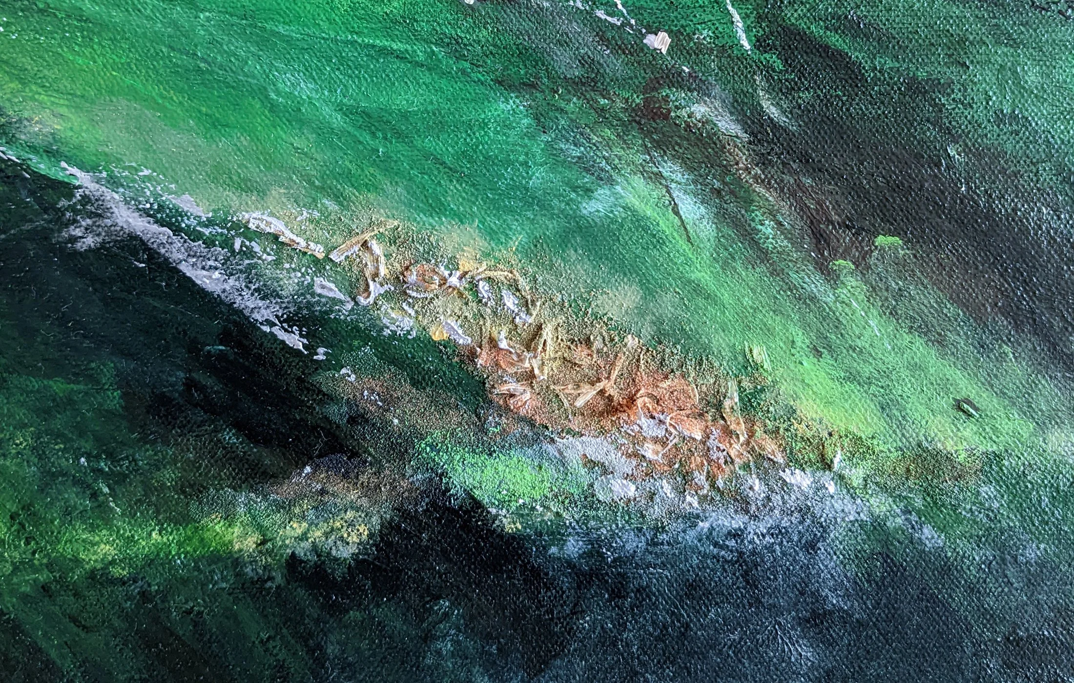 This art piece is very close to my heart. Few years back we visited beautiful country of Georgia and got a chance to see the snowy Kazbegi mountains. The cold breeze, grey clouds and lush green grass with a cap of fresh white snow ... I fell in love with the landscape. It was surreal to look at those massive structures who stood strong in harsh weather conditions. It gave us so much inspiration to lead life with a strong faith in ourselves. If we decide we can conquer any problem in life. I had to paint this lovely memory once back home.